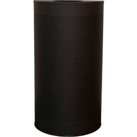 HALF-ROUND, TOP ENTRY RECEPTACLE WITH PERFORATED DESIGN PATTERN. THIS UNIT IS PERFECT FOR HOSPITALITY AND HOTEL VENUES, SUITES IN ARENAS AND STADIUMS AND CLASS A OFFICE PARKS. THE FLAT BACK IS PERFECT WHERE SPACE IS LIMITED. COMES WITH PLASTIC LINER. FEATURES