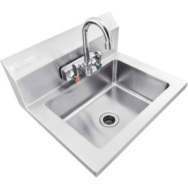 BUILT FOR WASHING AWAY DIRT AND GRIME, THE Global Industrial™ STAINLESS STEEL WALL MOUNT HAND SINK IS THE IDEAL WASHING COMPANION FOR A VARIETY OF JOBSITES AND WORKSTATIONS, WHETHER YOU NEED A RELIABLE STATION FOR WASHING TOOLS OR AN INDUSTRIAL SINK FOR CLEANING HANDS AFTER A HARD DAY'S WORK. THE DEEP BASIN ALLOWS ELBOW-DEEP SCRUBBING WHILE KEEPING SPLASHES WITHIN FOUR WALLS OF STAINLESS STEEL. PERFECT FOR ANY COMMERCIAL, EDUCATIONAL, OR INDUSTRIAL WORKING SPACE WHERE TOOLS NEED TO BE CLEANED FREQUENTLY. CONSTRUCTED OF WELDED 16 GAUGE, 304 STAINLESS STEEL FOR MAXIMUM CORROSION RESISTANCE. 14"W X 10"D AND 5"D BASIN BOWL. FEATURES GOOSENECK FAUCET, BACK-SPLASH AND BASKET TYPE DRAIN. FAUCET MOUNT ON 4" CENTERS; 1/2" HOT AND COLD SUPPLY. WALL MOUNTING BRACKET AND FASTENERS INCLUDED. NSF LISTED. 1 YEAR LIMITED WARRANTY.
