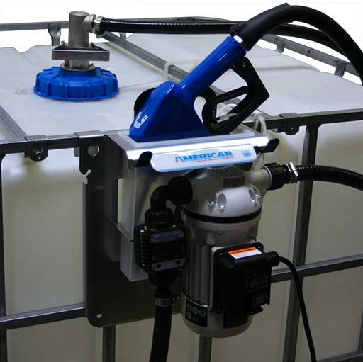 American LubricationFor Tote Tanks. 110v electric pumping system with timer. Includes pump with mounting bracket, 20' delivery hose, 4' suction hose, and manual polyet...