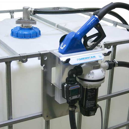 American Lubrication12 volt pumping system for Totes. Includes 12V pump with mounting bracket, 20'delivery hose, 4' suction hose, meter, and automatic nozzle. *Suction...