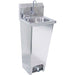 KROWNE PEDESTAL HAND SINK 16" X 15" X 42" OA WALL MOUNT W/BRACKET 14" X 10" FRONT-TO-BACK X 5-5/8" DEEP SPLASH MOUNT GOOSENECK SPOUT FAUCET OPERATED W/FOOT PEDAL 1-1/2" DRAIN SOAP DISPENSER STAINLESS STEEL CONSTRUCTION FOOT PEDESTAL STANDING HAND SINK