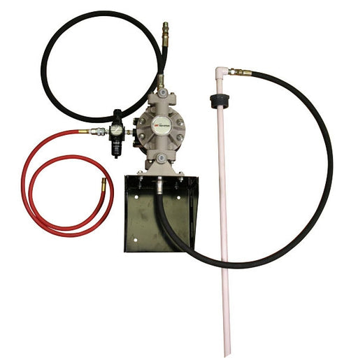 Keller HearttWall-mounted pumping system for anti-freeze or windshield washer fluid. Includes 1/2" diaphragm pump, wall mount bracket, hoses, siphon tube for 55...