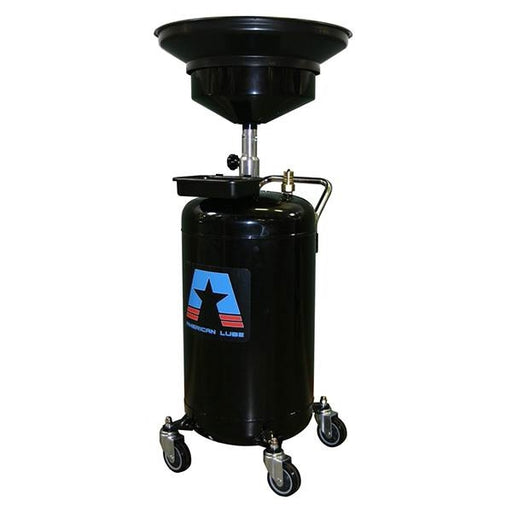 American LubricationPortable waste oil drain. Includes 23.8 gallon steel tank, 15 3/4" diameter metal drain bowl, 24" removable plastic drain bowl extension, storage t...