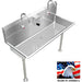 - MADE FROM 14 GAUGE HEAVY-DUTY STAINLESS STEEL TYPE 304 MADE IN THE USA FULLY SEAMLESS WELDED CORNERS FULLY POLISHED NO. 4 FINISH FULLY WELDED 1-1/2" DRAIN ETL AND NSF APPROVED FABRICATION INCLUDES ELECTRONIC FAUCET AND 40 OZ SOAP DISPENSER WALL HUNG WITH STAINLESS STEEL STRAIGHT LEGS