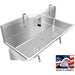 - MADE FROM 14 GAUGE HEAVY-DUTY STAINLESS STEEL TYPE 304 MADE IN THE USA FULLY SEAMLESS WELDED CORNERS FULLY POLISHED NO. 4 FINISH FULLY WELDED 1-1/2" DRAIN ETL AND NSF APPROVED FABRICATION INCLUDES ELECTRONIC FAUCET AND 40 OZ SOAP DISPENSER WALL HUNG WITH STAINLESS STEEL WALL BRACKETS