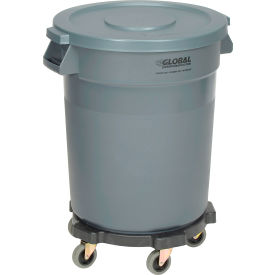 Global Industrial™ PLASTIC GARBAGE CAN WITH LID & DOLLY - 20 GALLON GRAY THESE TRASH CANS ARE MADE WITH DURABLE, LONG LASTING POLYETHYLENE RESIN. LEAK-PROOF SEAMLESS PLASTIC ALLOWS EASY CLEANING AND WASTE DISPOSAL, AND WON'T CORRODE, CHIP, CRACK OR PEEL. THESE GARBAGE CANS NEST WHEN EMPTY TO SAVE VALUABLE STORAGE SPACE. RUGGED ROLLED FORMED TOP RIM IS REINFORCED FOR ADDED STRENGTH AND DURABILITY. STRONG GRIP HANDLES MAKE LIFTING EASY. FLAT LID HELPS PROTECT CONTENTS AND KEEPS ODORS IN. THE INCLUDED DOLLY CONVERTS THE RECEPTACLE INTO AN EASY-TO-MOVE PORTABLE CONTAINER. INCLUDES FIVE 3" NON-MARRING SWIVEL CASTERS. GARBAGE CAN AND LID ARE NSF APPROVED. 1 YEAR LIMITED WARRANTY. INCLUDES: (1) 20 GALLON TRASH CAN, (1) 20 GALLON FLAT LID, AND (1) DOLLY