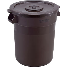 Global Industrial™ Plastic Trash Can with Lid - 20 Gallon Brown