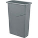 THE Global Industrial™ GRAY SLIM TRASH CONTAINER IS CONSTRUCTED OF HEAVY DUTY PLASTIC TO RESIST DENTS AND CORROSION WHILE STANDING UPRIGHT TO COLLECT UP TO 23 GALLONS OF WASTE FOR ANY OFFICE, CLASSROOM, OR GARAGE. SMOOTH SURFACE ALLOWS FOR SIMPLE CLEANING AND WIPE DOWNS. COMPACT DESIGN CAN BE FITTED IN TIGHT SPACES OR ALONG WORKSTATIONS. CORNER TABS HELP SECURE TRASH BAGS IN PLACE. GARBAGE CANS FEATURE BUILT-IN FINGER GRIPS ON TOP RIM AND HANDLES ON BOTTOM WHICH MAKES LIFTING AND DUMPING EASIER. AVAILABLE LIDS OPTIONS FIT FOR THIS CONTAINER ARE : PAPER RECYCLING SLOT, BOTTLES & CANS SLOT OR SOLID HANDLE STYLE. COMBINE CONTAINERS WITH ANY OF THESE 3 DIFFERENT LID STYLES TO CREATE YOUR OWN RECYCLING STATION. (SOLD SEPARATELY). VIEW OUR COORDINATING COLLECTION OF RECYCLING BINS.