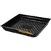 CONTROL MESSY, SLIPPERY SPILLS AND KEEP WORKPLACES CLEAN. ECOPOLYBLEND™ SPILL TRAYS ARE MADE OF 100% POST-INDUSTRIAL RECYCLED POLYETHYLENE. THEY'RE IDEAL FOR CATCHING AND CONTAINING DRIPS AND LEAKS FROM SMALL EQUIPMENT, VEHICLE BATTERIES, OR POURING AND FILLING ACTIVITIES. LIGHTWEIGHT AND DURABLE, THESE RIGID POLYETHYLENE (HDPE) SPILL TRAYS HAVE EXCELLENT CHEMICAL RESISTANCE AND MAKE CLEAN-UP A SNAP. THEY FEATURE A RIBBED BOTTOM AND ARE RATED FOR SERVICE TEMPERATURE BETWEEN -30° TO 120°F (-34° TO 49°C), MAKING THEM SUITABLE FOR INDOOR OR OUTDOOR USE. INCLUDES A LIMITED WARRANTY OF 1 YEAR.