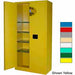 CONTROLLING UNWANTED SPILLS IS EASIER THAN EVER WITH SINGLE WALL SPILL CONTAINMENT CABINETS. KEEP ALL OF YOUR SPILL CONTROL SUPPLIES READY AND IN ONE ORGANIZED LOCATION. CHOOSE FROM THREE POPULAR SIZES. THE LARGER FULL SIZE CABINETS ARE STATIONARY. ALL-WELDED 18 GAUGE EXTRA STRENGTH CONSTRUCTION. FLUSH MOUNTED HANDLE PROVIDES EASY AND FAST FINGERTIP OPERATION. CABINETS HAVE 3-POINT BUTTON LOCK SELF-LATCHING DOORS FOR EXTRA SAFETY. THE INTERIOR AND EXTERIOR FINISH CONSISTS OF AN ALIPHATIC POLYURETHANE FINISH. THIS POLYURETHANE COATING HAS CHEMICAL PROPERTIES TO WITHSTAND SALT SPRAY, CHEMICAL RUB, FADING DUE TO UV EXPOSURE, AND OTHER TESTS PERFORMED TO EPOXY PAINTS. URETHANE IS MORE DURABLE UNDER CONDITIONS WHEN MOVING ITEMS IN AND OUT OF THE CABINET AS IT RESISTS CHIPPING AND PEELING. ALL CABINETS COMPLY WITH CURRENT OSHA REGULATIONS AND ARE DESIGNED IN ACCORDANCE WITH THE STANDARDS OF NFPA. CUSTOM INTERIORS ARE AVAILABLE TO FIT YOUR SPECIFIC NEEDS.