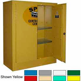 CONTROLLING UNWANTED SPILLS IS EASIER THAN EVER WITH SINGLE WALL SPILL CONTAINMENT CABINETS. KEEP ALL OF YOUR SPILL CONTROL SUPPLIES READY AND IN ONE ORGANIZED LOCATION. CHOOSE FROM THREE POPULAR SIZES. THE WALL-MOUNTED CABINET KEEPS ALL YOUR SPILL CONTROL SUPPLIES AVAILABLE WITHOUT TAKING UP FLOOR SPACE. ALL-WELDED 18 GAUGE EXTRA STRENGTH CONSTRUCTION. FLUSH MOUNTED HANDLE PROVIDES EASY AND FAST FINGERTIP OPERATION. CABINETS HAVE 3-POINT BUTTON LOCK SELF-LATCHING DOORS FOR EXTRA SAFETY. THE INTERIOR AND EXTERIOR FINISH CONSISTS OF AN ALIPHATIC POLYURETHANE FINISH. THIS POLYURETHANE COATING HAS CHEMICAL PROPERTIES TO WITHSTAND SALT SPRAY, CHEMICAL RUB, FADING DUE TO UV EXPOSURE, AND OTHER TESTS PERFORMED TO EPOXY PAINTS. URETHANE IS MORE DURABLE UNDER CONDITIONS WHEN MOVING ITEMS IN AND OUT OF THE CABINET AS IT RESISTS CHIPPING AND PEELING. ALL CABINETS COMPLY WITH CURRENT OSHA REGULATIONS AND ARE DESIGNED IN ACCORDANCE WITH THE STANDARDS OF NFPA. CUSTOM INTERIORS ARE AVAILABLE TO FIT YOUR SPECIFIC NEEDS.